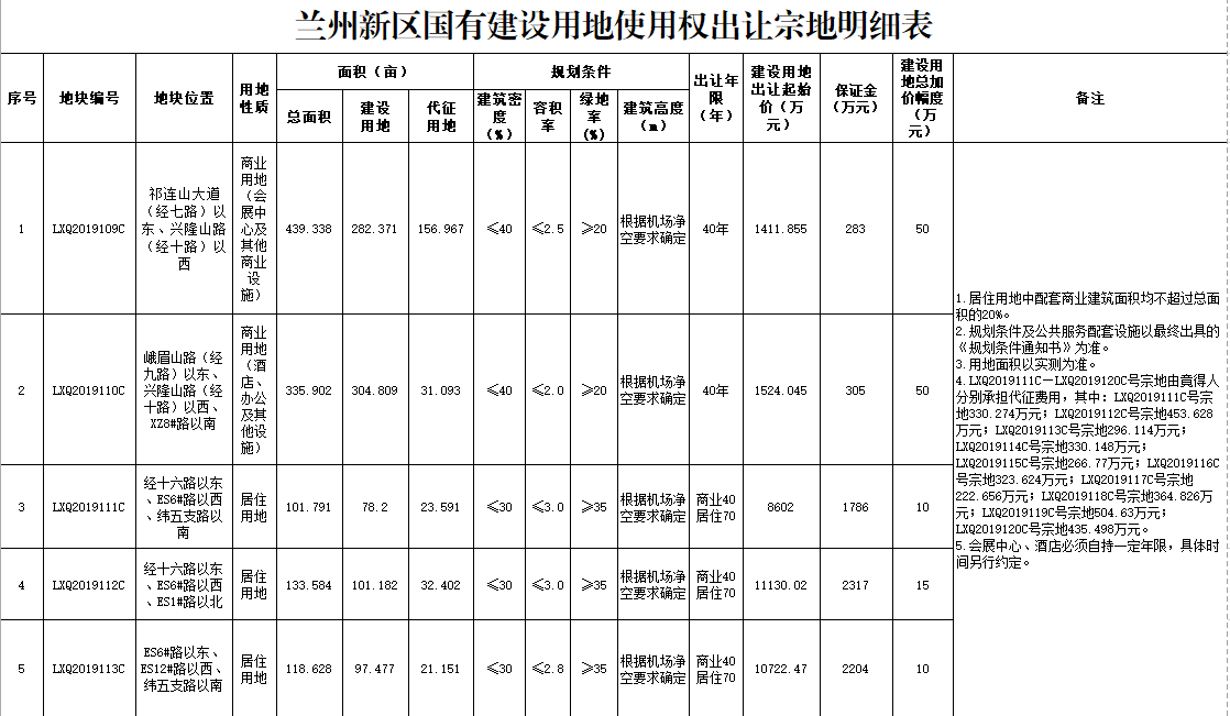 蘭州新區(qū)LXQ2019109C等12宗國有建設(shè)用地使用權(quán)公開出讓公告
