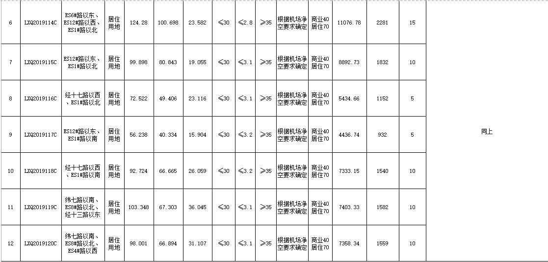 1、此次出讓的12宗土地必須由同一公司或同一控股股東公司,采取分別競價(jià),整體競買,統(tǒng)一開發(fā)建設(shè)。其中LXQ2019109C、LXQ2019110C等2宗用地為會展中心及配套設(shè)施用地,需引進(jìn)國際知名會展運(yùn)營商(報(bào)名時(shí)需提供引進(jìn)運(yùn)營商的相關(guān)資料)。